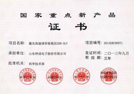 激光高速球形夜視儀SHR-DLV列入2013年度國家重點新產(chǎn)品計劃項目
