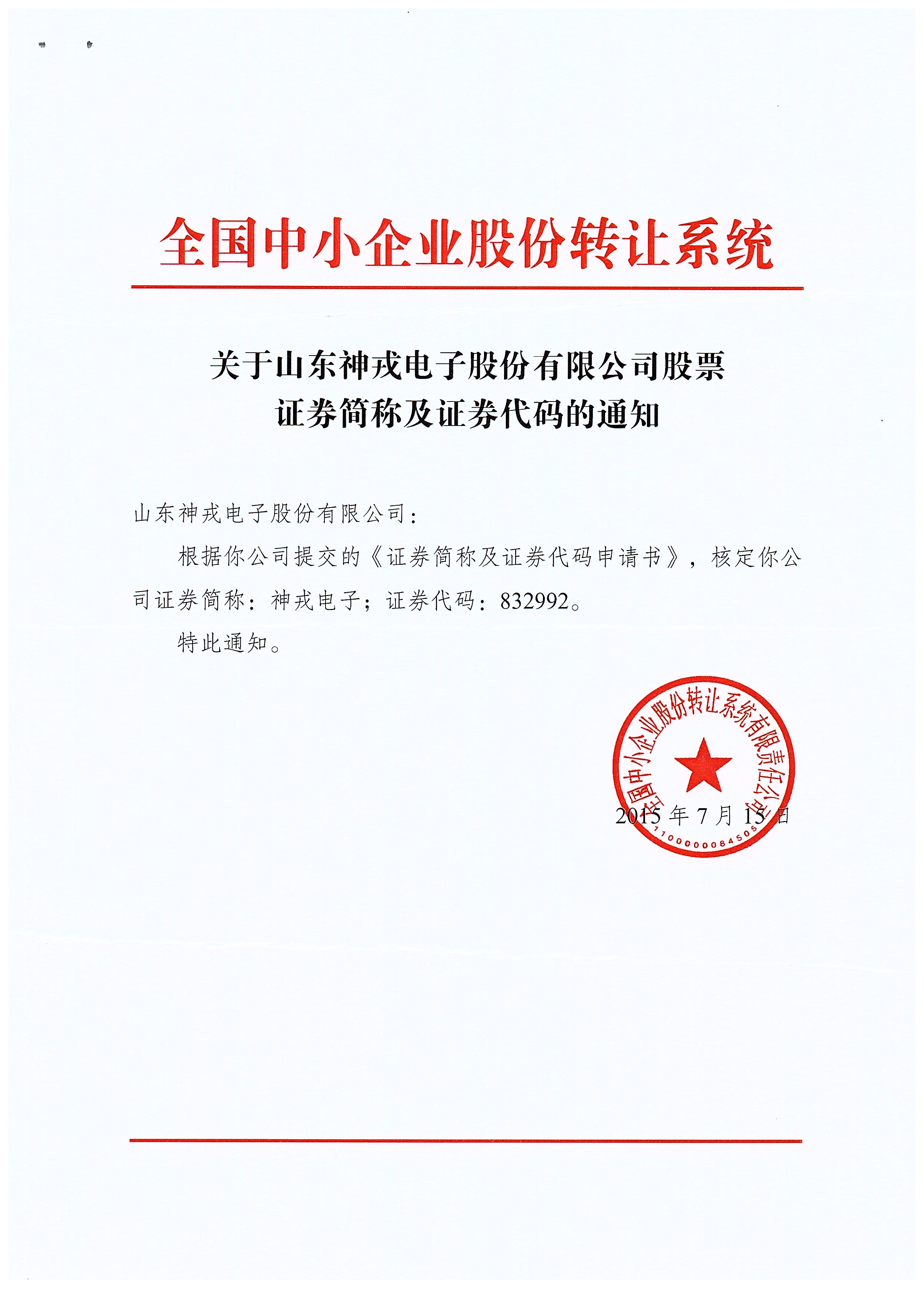 2015年11月4日,經(jīng)全國中小企業(yè)股份轉(zhuǎn)讓系統(tǒng)公司批準,山東神戎電子股份有限公司股票正式在“新三板”掛牌公開轉(zhuǎn)讓,股票代碼:832992,標志著公司的發(fā)展進入了一個新的階段。 神戎公司作為夜視及加固…
